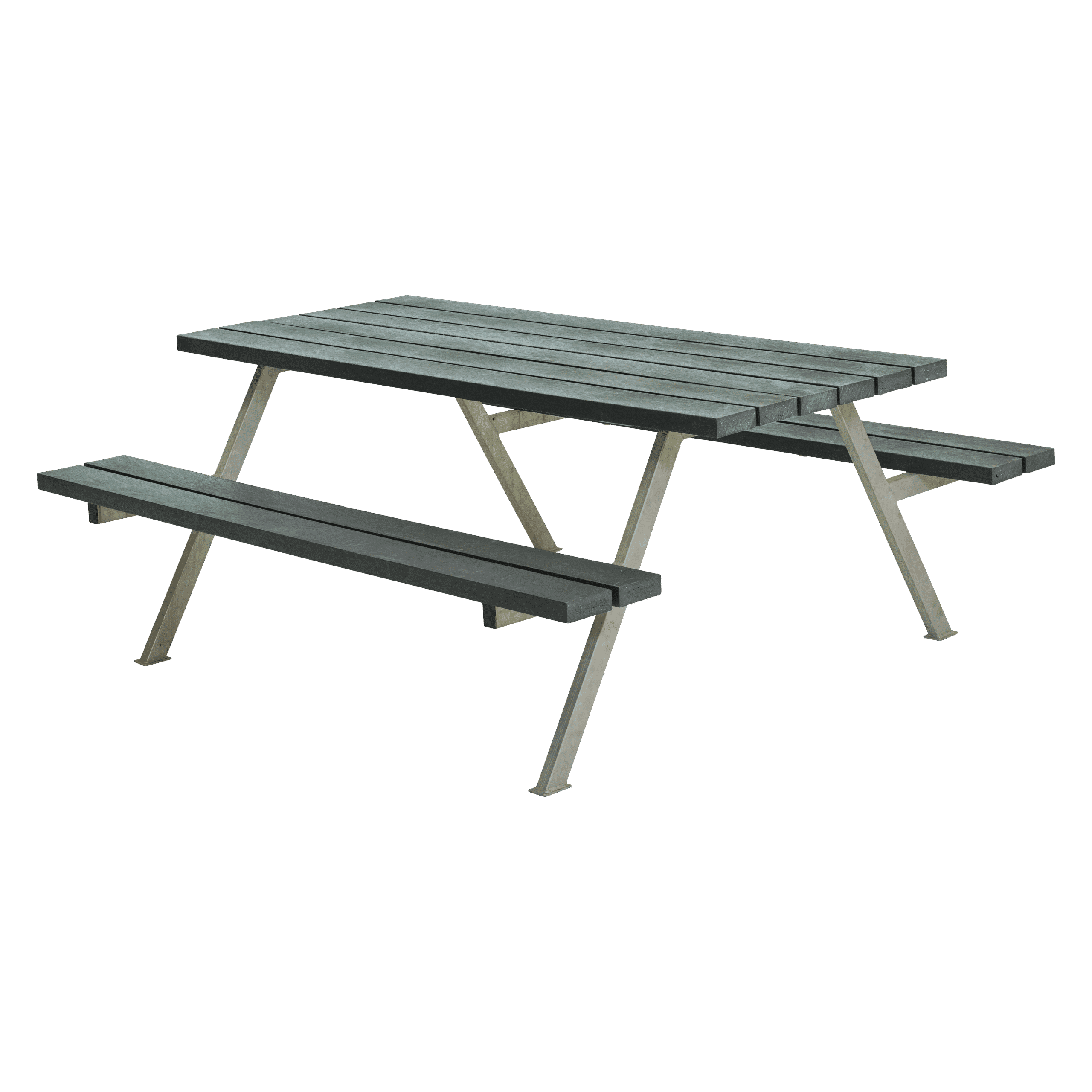 Planker:42116 mmubehandletlærk. Bordplade:Længde 177cm – bredde 76 cm – højde 73 cm. Bænke:Længde 177cm – bredde 24,5 cm – højde 45 cm. Siddepladser: 63pr. bænk. Stelben:3050 mmvarmgalvaniseret stål. Leveres som quotSaml selvqu