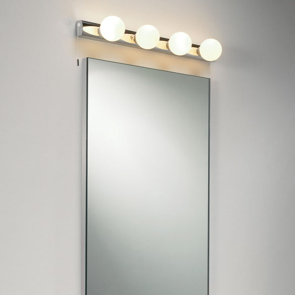 Cabaret væglampe fra Astro Lighting Smuk lampe som giver et godt lys, specielt når den hænger enten til siden eller oven over spejlet på badeværelset. Cabaret lampen fås som enten Cabaret 4 eller Cabaret 5. med enten 4, eller 5 kugle lampehoveder. Cabaret
