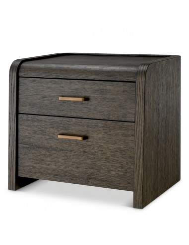 Eichholtz Joane sengebord udført i et luksuriøst og moderne design, fremstillet af antik bronzelakeret stål og mokkabrun egetræsfinr med 2 skuffer. Sengebordet måler 53,5 cm i højden og 60 x 49 cm i bredde og dybde. Forventet leveringstid: 1 – 2 uger