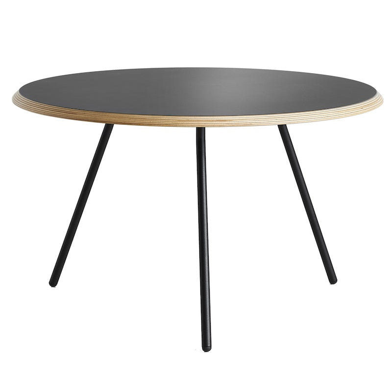 Stort rundt sofabord med flot Fenix top Rundt Soround sofabord med Fenix top som har en diameter på 75 cm. Kombinationen af krydsfiner, metal og nanolaminat ser rigtig godt ud på dette sofabord. Den unikke detalje med den synlige lyse træ passer flot samm