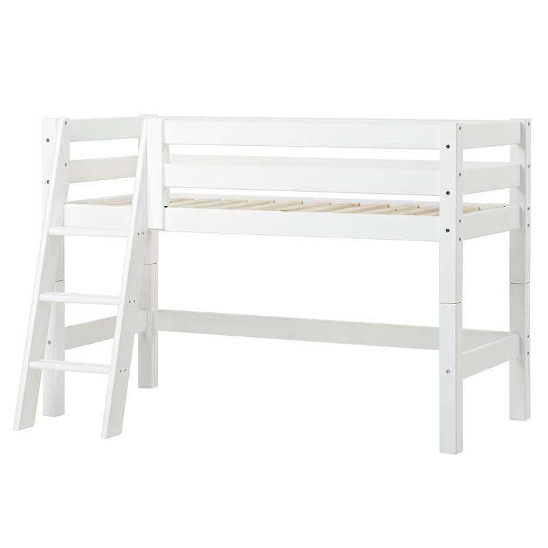 Produkt id: hoppekids-eco-luxury-halvhøj-seng-ryglæn-skrå-stige-flere-størrelser-hvid 5706558026466