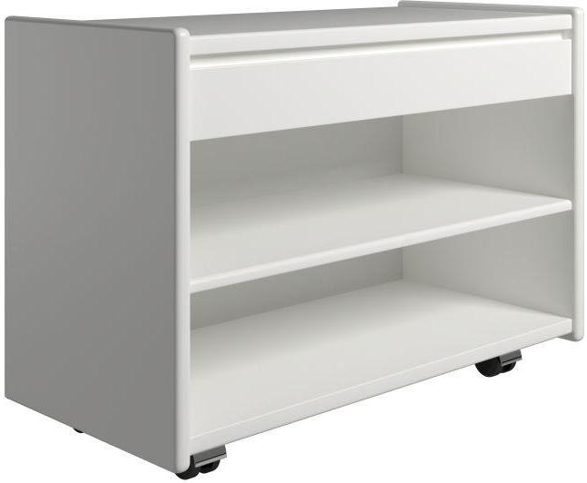Produkt id: krone-bredt-hvidlakeret-sengebord-med-skuffe-hylde-dansk-produceret-dybde-hjul