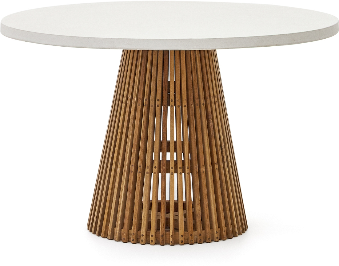 Produkt id: udendørs-rundt-spisebord-kave-home-alcaufar-hvidt-fibercement-teaktræ-120-h76 8433840925202