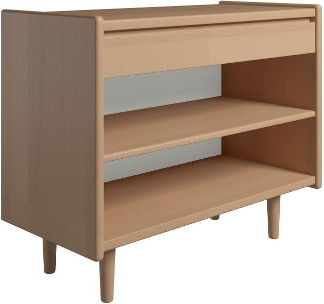 Produkt id: krone-bredt-sengebord-bøgefiner-med-skuffe-hylde-dansk-produceret-dybde-træben