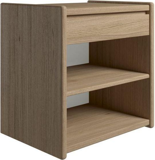 Produkt id: krone-sengebord-bred-olieret-egefiner-med-skuffe-hylde-dansk-produceret-dybde-vægophæng