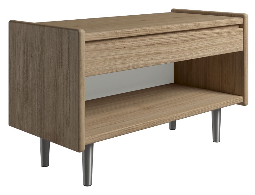 Produkt id: krone-sengebord-olieret-egefiner-bred-med-skuffe-rum-dansk-produceret-dybde-metalben