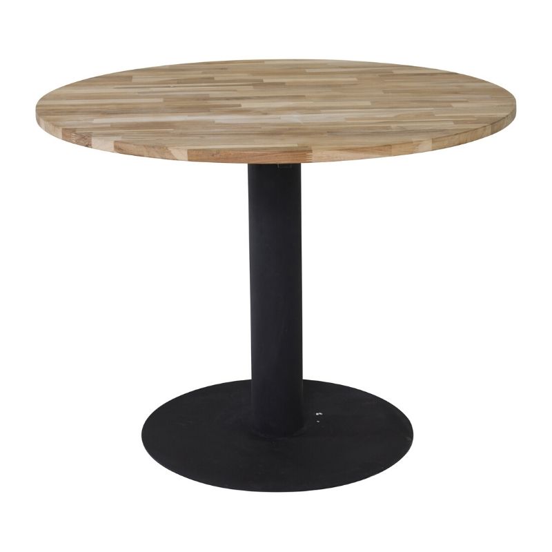 Rundt spisebord med flot bordplade i teaktræ og sort stel Det runde Cirebon spisebord er flot at have stående i spisestuen og giver god plads til 2-6 personer alt efter variant. Bordet kan fås med en diameter på 100 cm og 140 cm vælg variant ovenfor. Sp