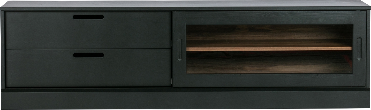 Produkt id: skænk-woood-exclusive-james-bord-fyrretræ-mat-sort-natur-180x42x50-skuffer-rum-med-glaslåge 8714713108534