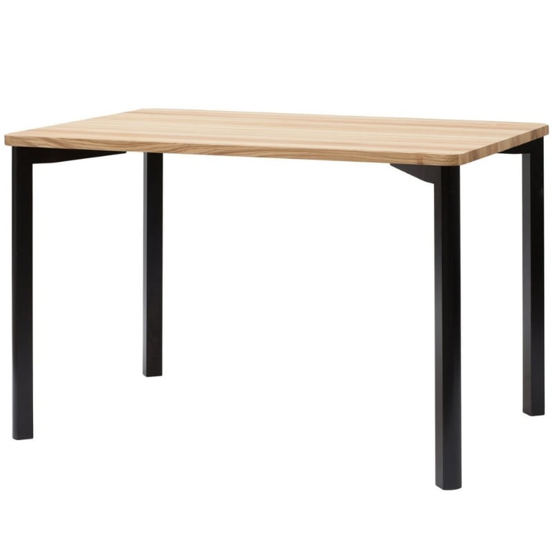 Flot spisebord til fire personer i lys asketræ med malede ben Spisebord på 120 cm x 80 cm x 75 cm i asketræ og bøgetræ. Den flotte bordplade er i massiv asketræ, mens at benene er i bøgetræ. Du har mulighed for at vælge, om du ønsker benene sortmalet elle
