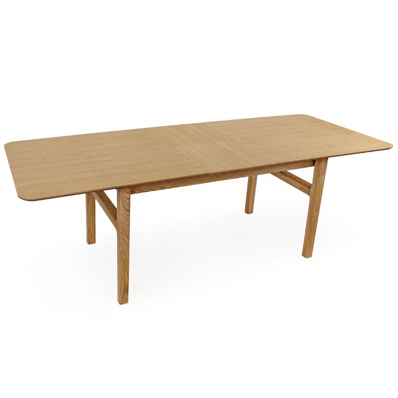 Flot spisebord i egetræ med smart butterfly udtræk Spisebord med udtræk der kan forlænges fra 180 cm til 220 cm. Bordet kan nemt forlænges med det indbyggede butterfly udtræk, hvor de midterste bordplader kan opbevares under bordpladen, når de ikke er i b